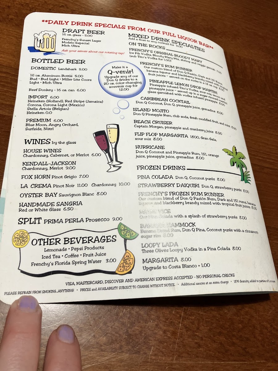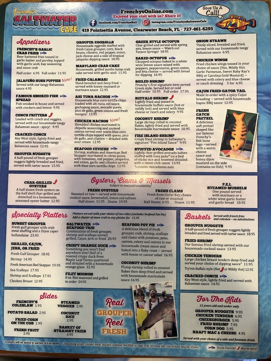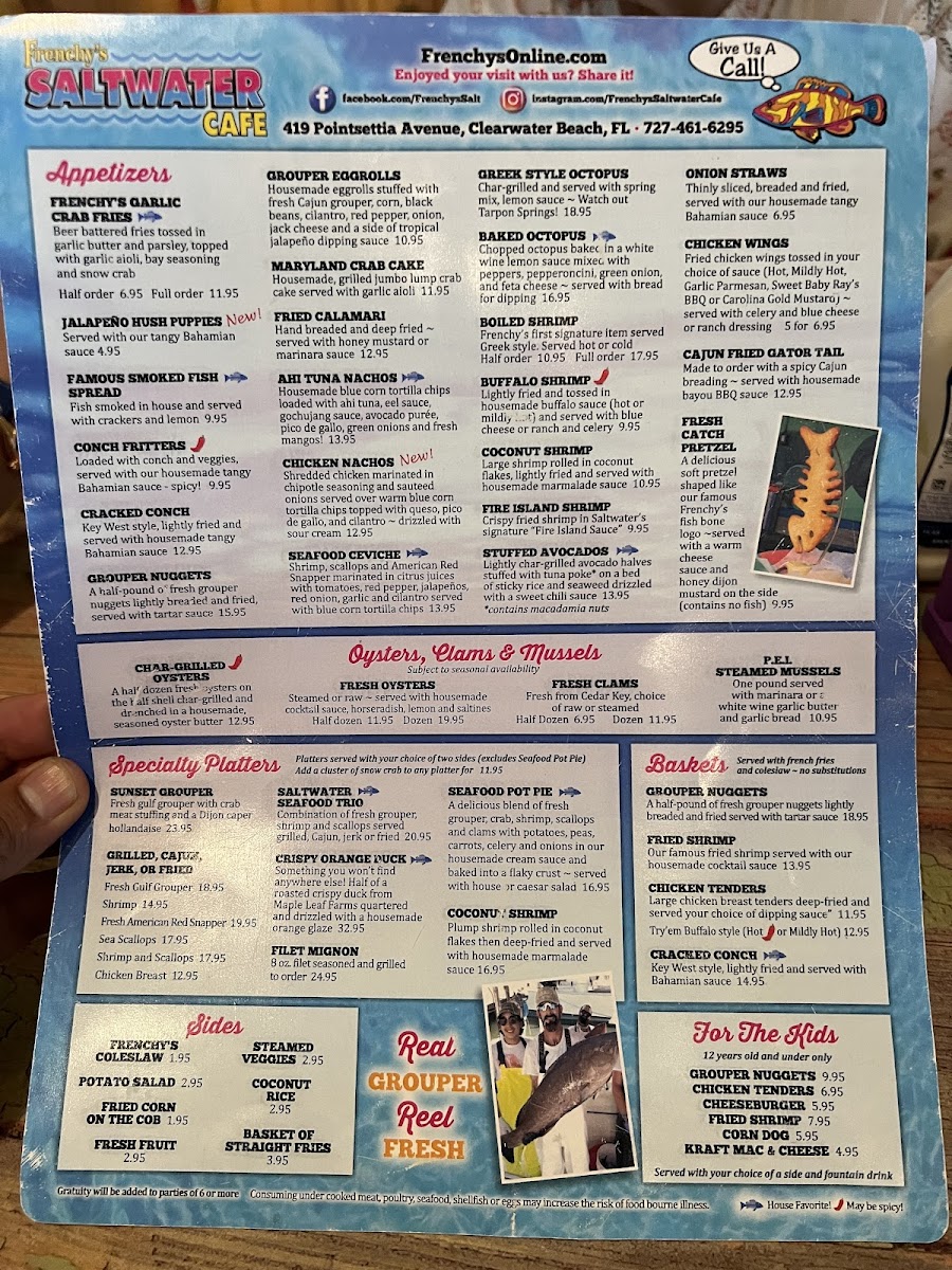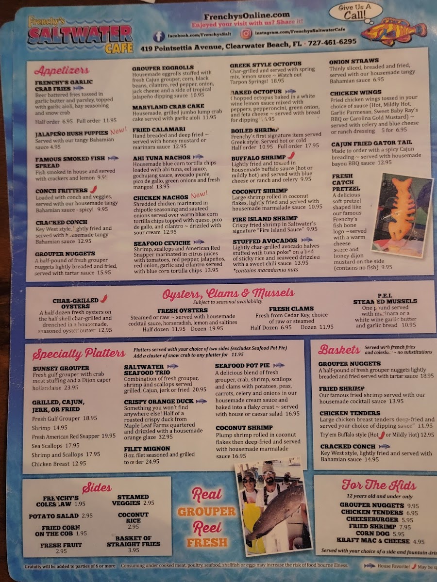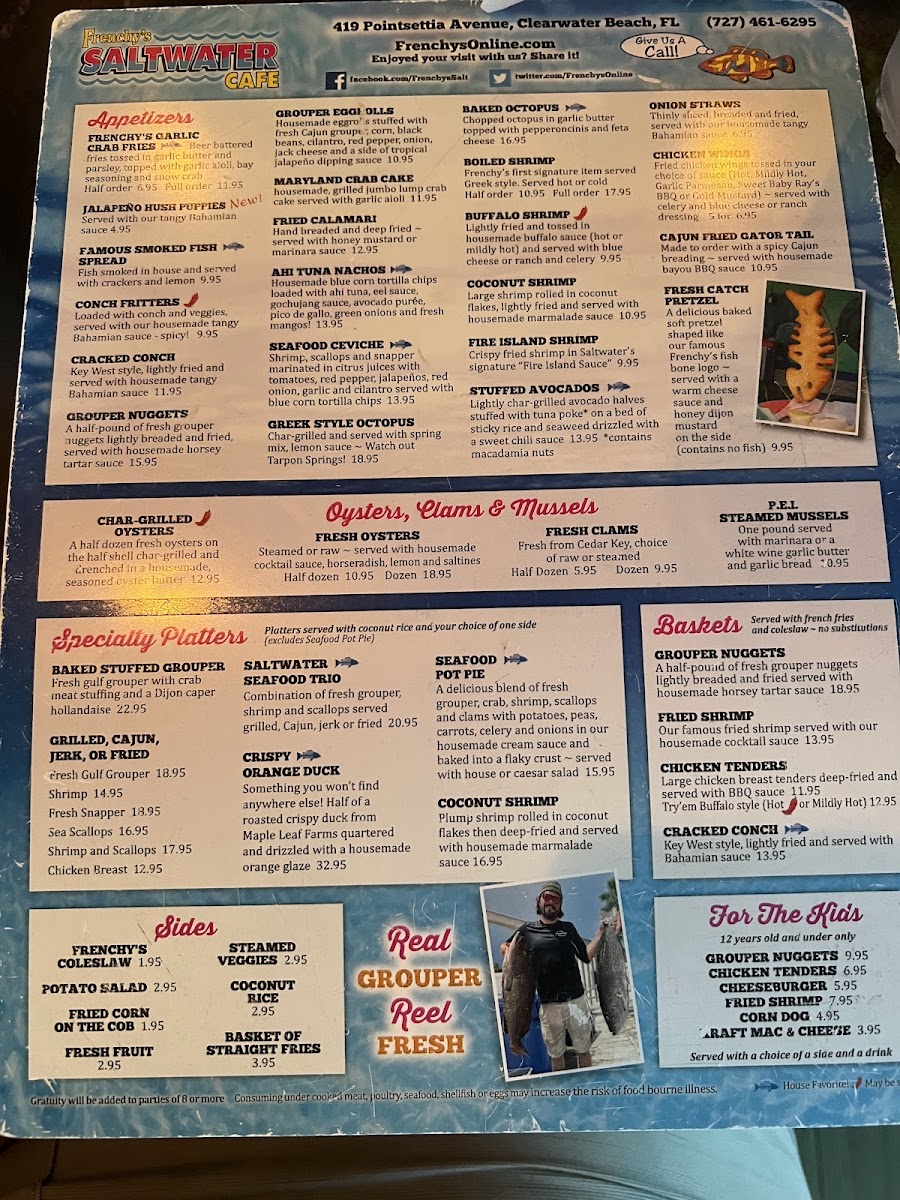 Beyond grouper, adventurous palates can enjoy standout dishes like alligator bites and creative options like ahi tuna nachos, blending bold flavors with thoughtful preparation. Complementing these dishes is a diverse beverage selection ranging from classic sodas and fresh juices to local beers and fine wines.