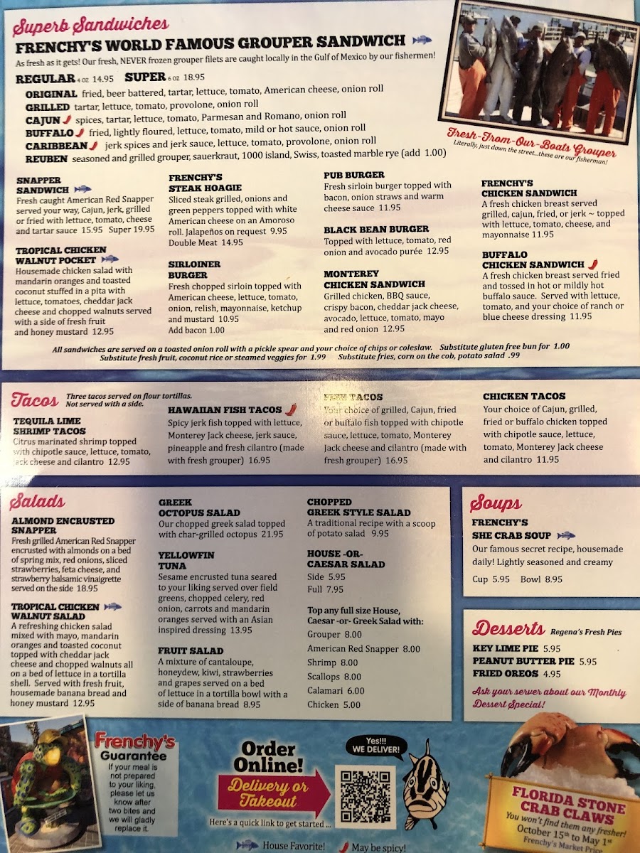 Frenchy's Saltwater Cafe in Clearwater, FL, offers a fresh and vibrant seafood experience centered around their star ingredient: grouper. The menu highlights several unique preparations of the grouper sandwich, including the classic beer-battered fried, Cajun-spiced, jerk-seasoned, and simply grilled varieties, each topped with crisp lettuce, ripe tomato, and melted cheese, perfectly balanced by their signature tartar sauce. The freshness is evident, with fish sourced directly from the boat dock, ensuring a taste of the sea in every bite.